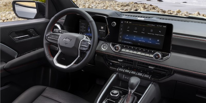 Underneath, the Colorado’s architecture is built around a fully boxed steel frame designed for strength and rigidity. The suspension varies by trim, with independent front coil-overs and rear leaf springs on most models, while the ZR2 and Bison use a high-performance setup with Multimatic DSSV spool-valve dampers. These advanced shocks automatically adjust damping for precise control, improving ride quality on pavement and maintaining composure over rocks, sand, or ruts. Ground clearance exceeds 10 inches on the ZR2, supported by increased wheel travel and durable front and rear locking differentials that allow all four wheels to pull evenly in the toughest terrain.
